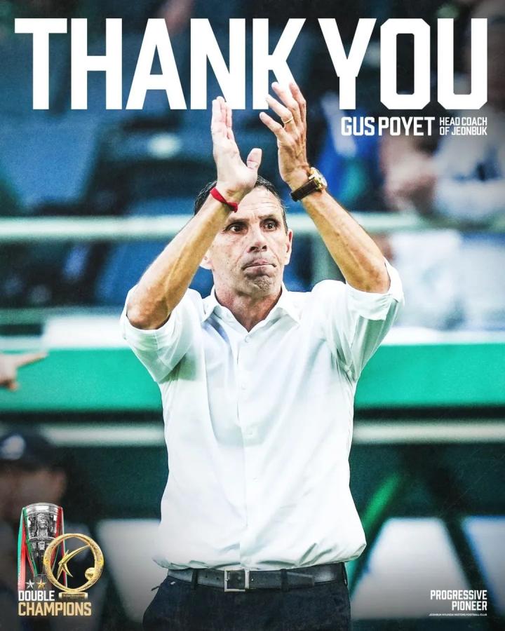 全北现代官方写道:波耶特练与全北现代的执教征程正式落幕。曾为全北现代重返巅峰并肩征战,曾引领我们迈入全新历史时刻。衷心祝愿波耶特教练前程似锦、顺遂安康!