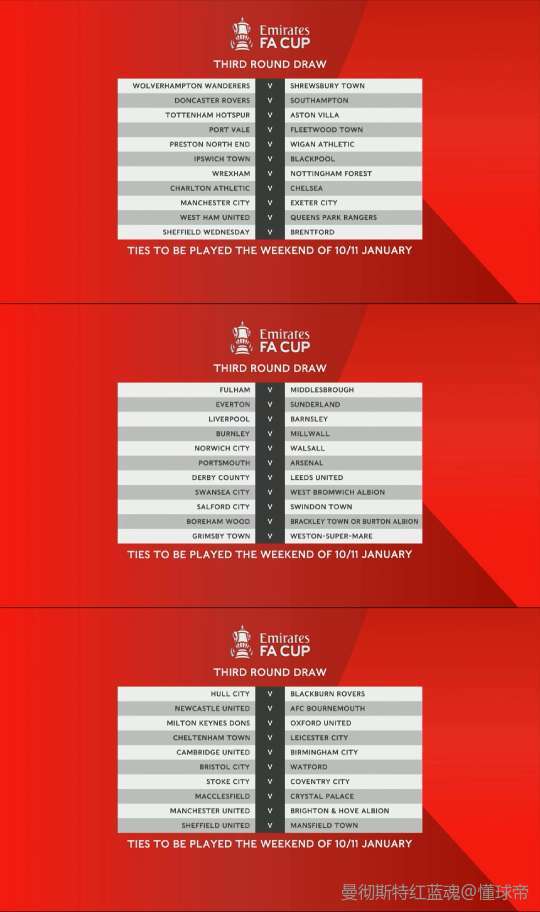 扫描下载懂球帝首页>动态> 英格兰足总杯第三轮对阵:热刺vs维拉,曼联vs布莱顿