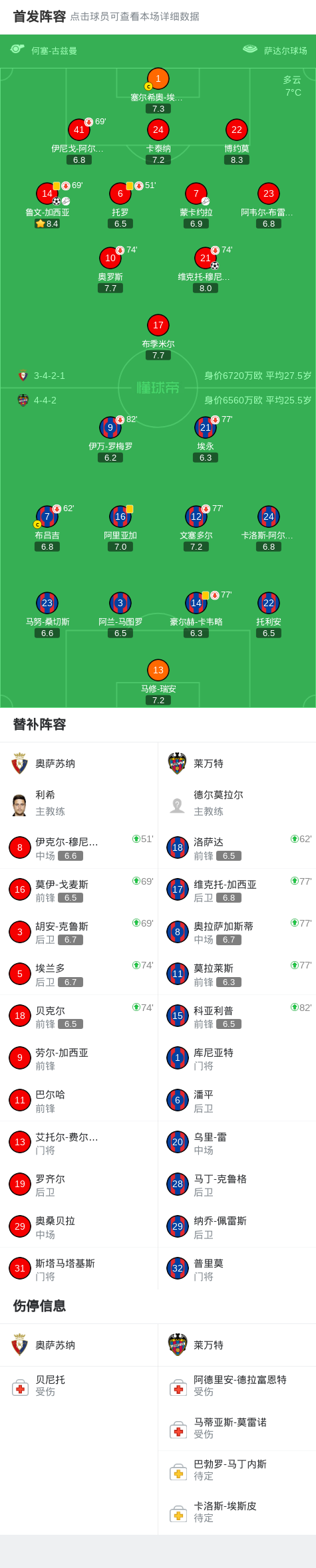 第13分钟,奥萨苏纳球员鲁文-加西亚助攻维克托-穆尼奥斯打入一球。