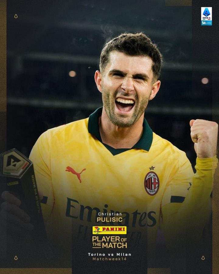 扫描下载懂球帝首页>动态> 替补出场梅开二度,普利希奇当选都灵vs米兰全场最佳