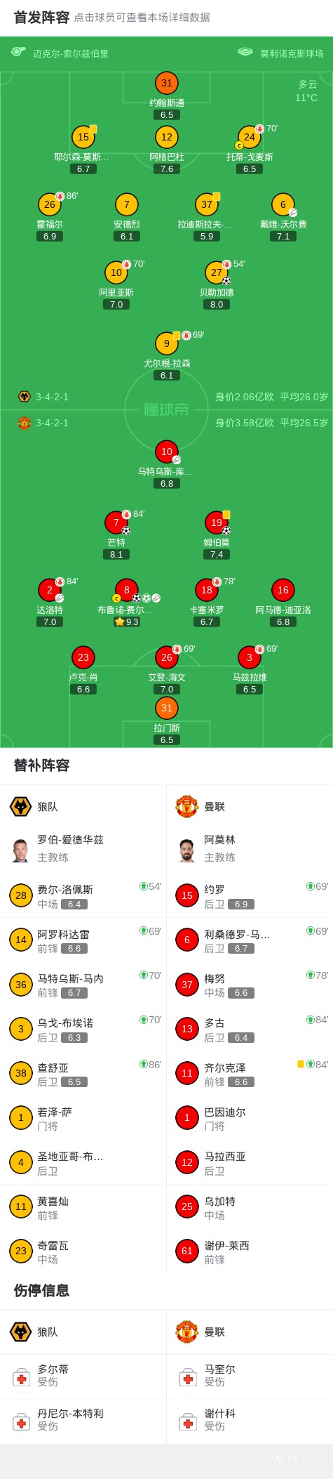 扫描下载懂球帝首页>动态> 剑南春|曼联4-1客胜狼队,B费两射一传,芒特、姆伯莫建功