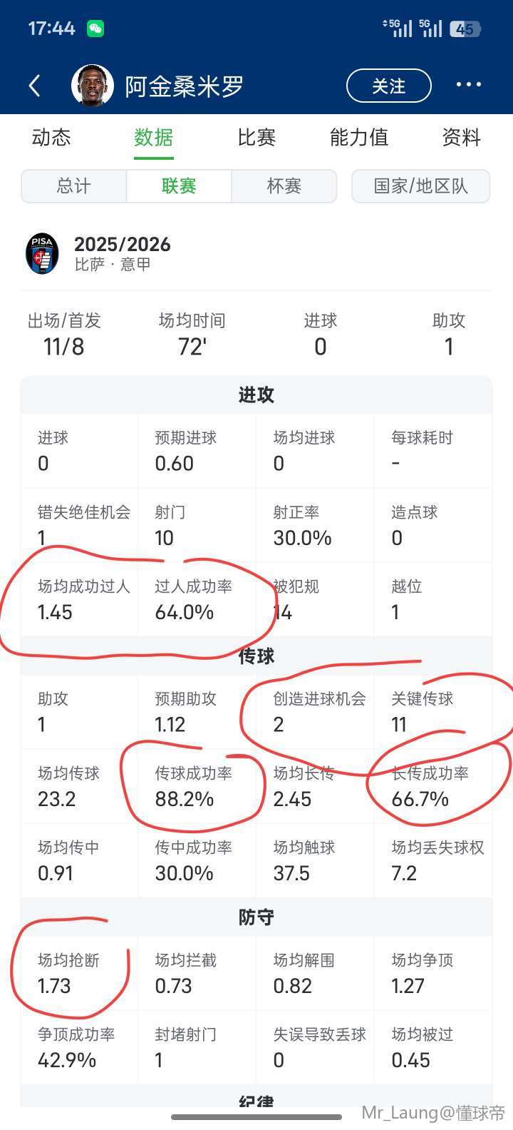 感觉不错呀这数据,21岁在意甲能有这样的表现,可以召回来试试,中场也该储备下新生代力量了,恰恰和他娘年龄始终大了