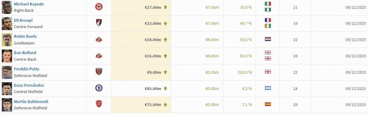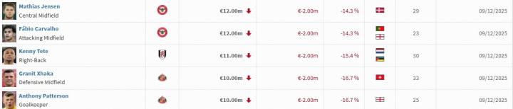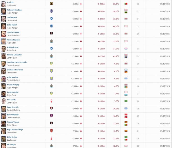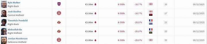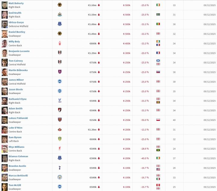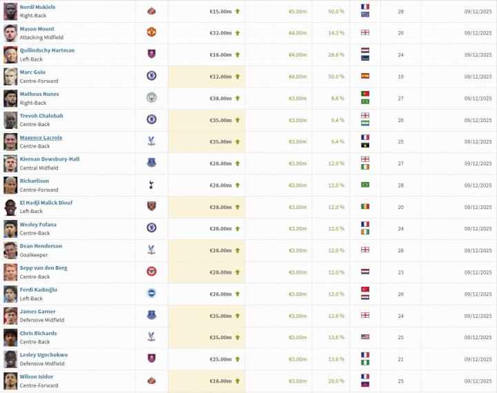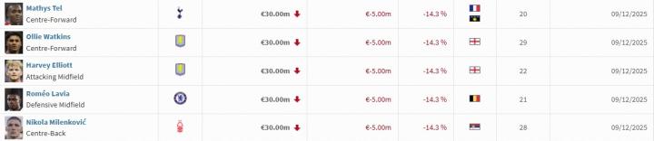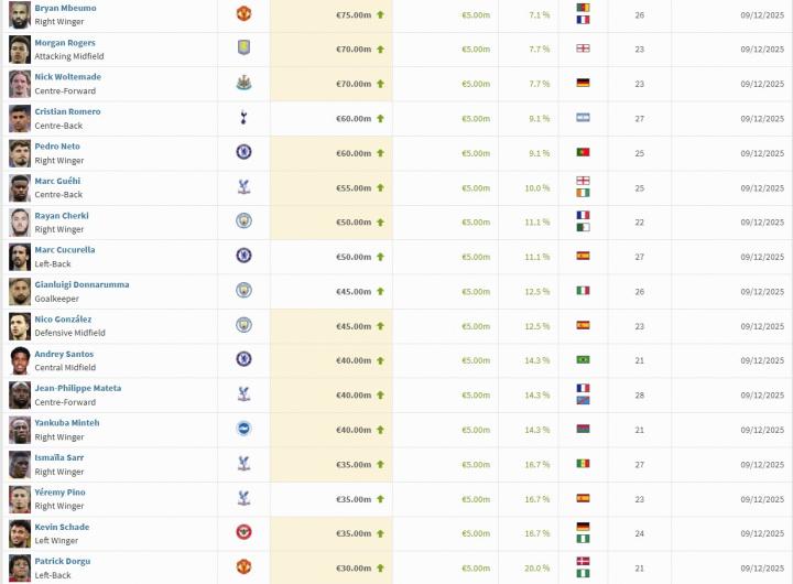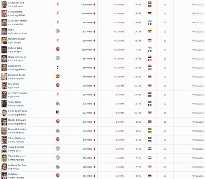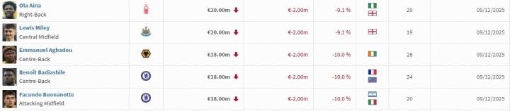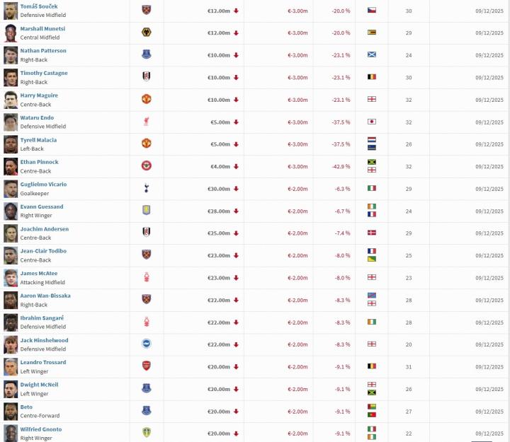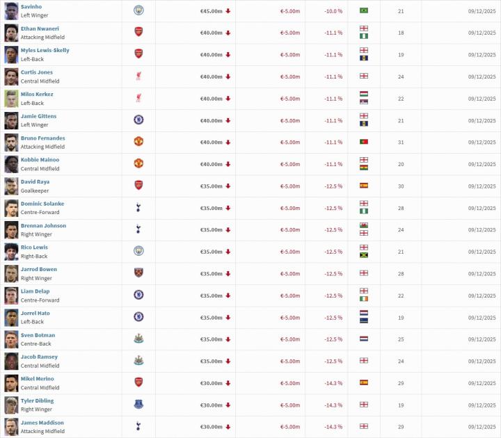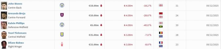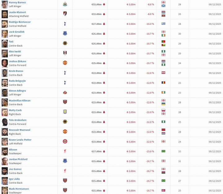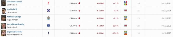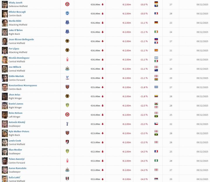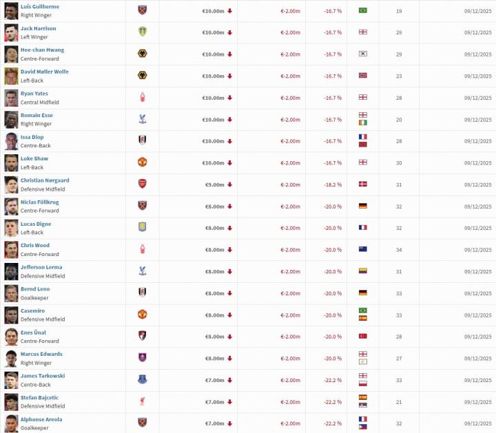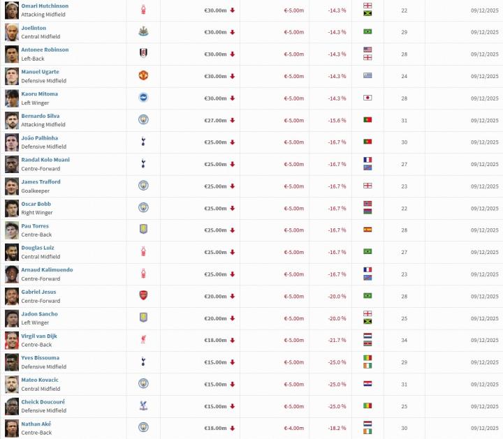 北京时间12月9日,德国转会市场进行了最新一期的英超身价更新。