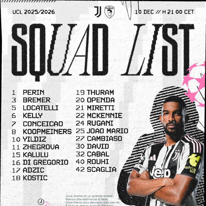扫描下载懂球帝首页>动态> 尤文vs帕福斯大名单:伊尔迪兹领衔,布雷默、鲁加尼伤愈归队