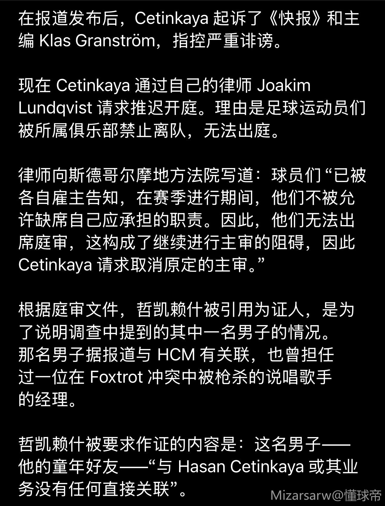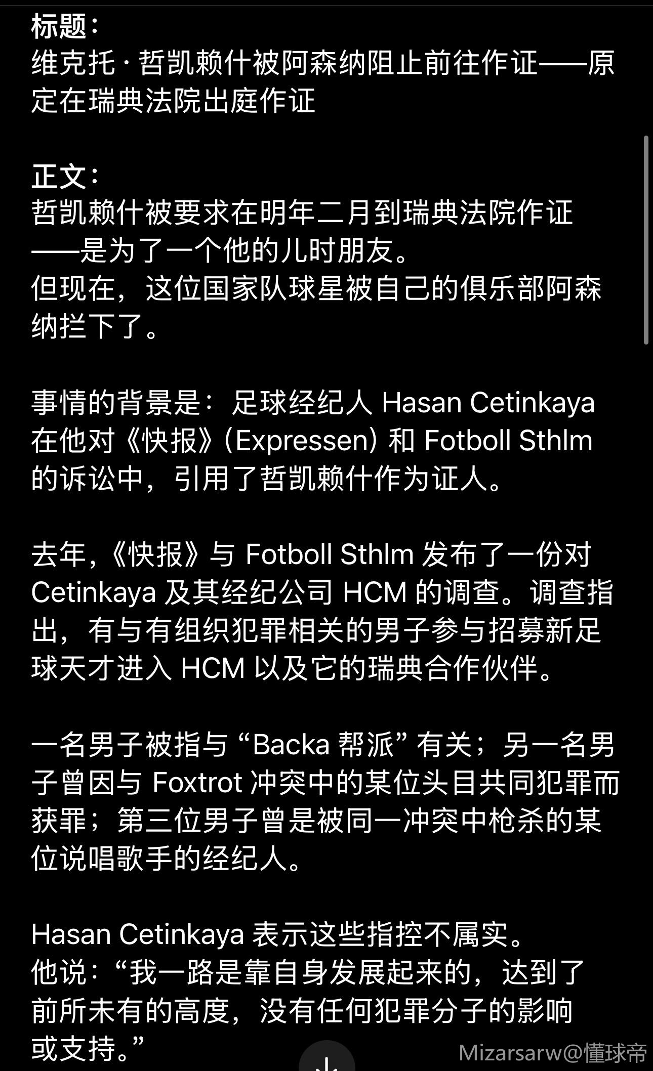 这个原定于明年2月开庭,案子有点复杂,大概就是经纪人涉黑,哲凯的童年好友也牵扯进去,但是和哲凯本人没什么关系,他经纪人的其他球员也被要求作证了