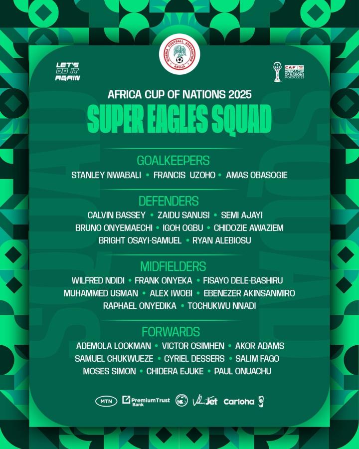 扫描下载懂球帝首页>动态> 尼日利亚非洲杯大名单:奥斯梅恩领衔,卢克曼、伊沃比在列