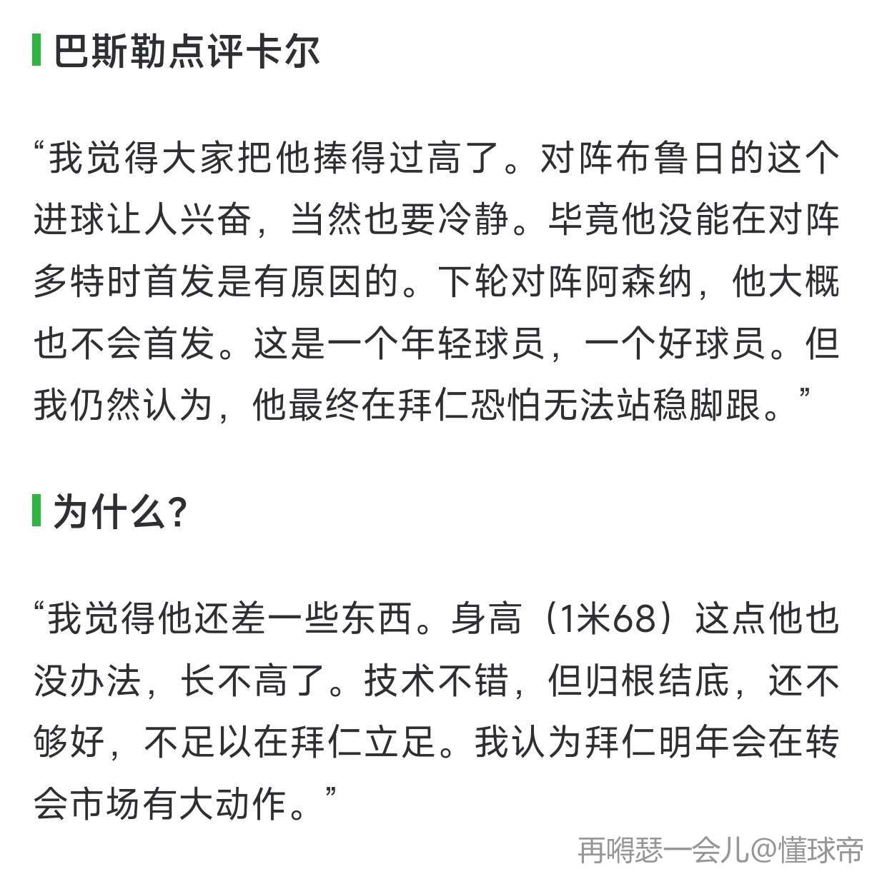 扫描下载懂球帝首页>动态> 巴斯勒:卡尔目前不是拜仁最顶尖的天才,他迟早会被租出去