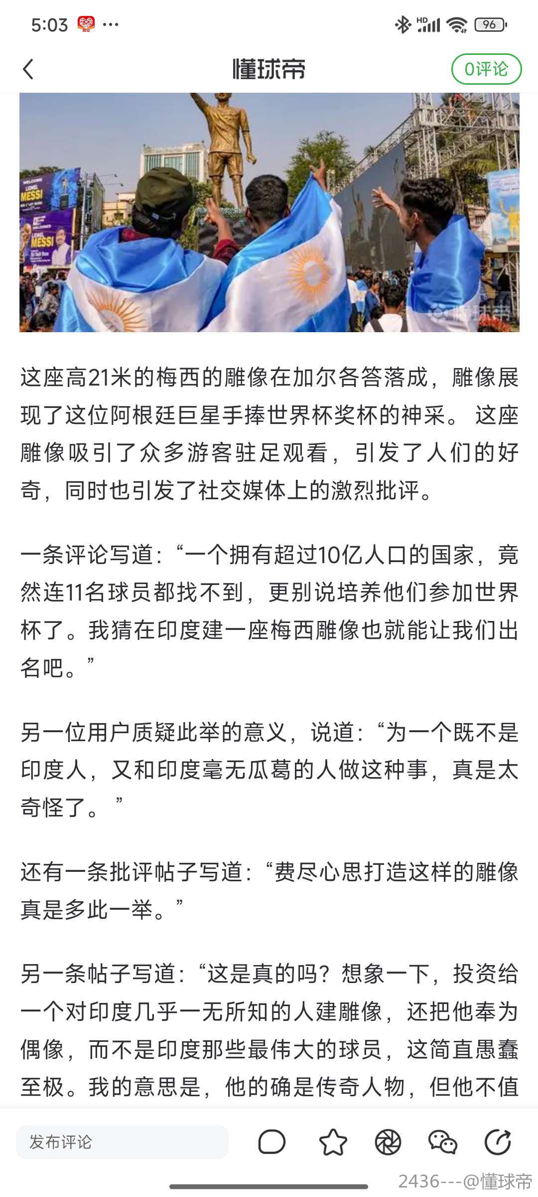 扫描下载懂球帝首页>动态> 印度网友质疑建造梅西雕像:多此一举,不如花钱培养球员