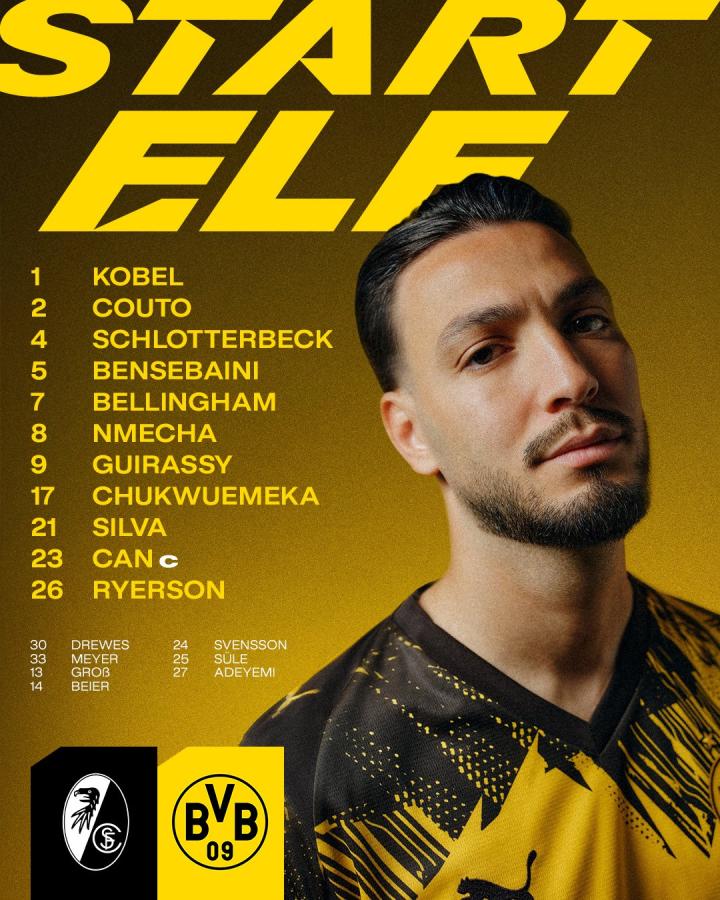 扫描下载懂球帝首页>动态> 多特客战弗赖堡:吉拉西、小贝林厄姆首发,埃姆雷-詹出战