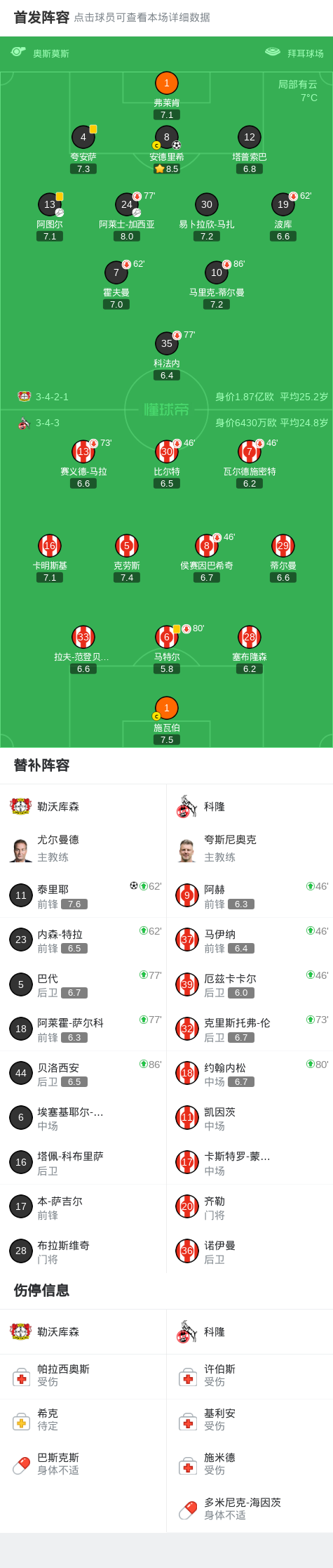 12-14 02:15勒沃库森vs科隆:霍夫曼、夸安萨首发,比尔特、卡明斯基出战