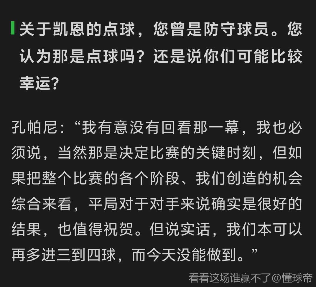 扫描下载懂球帝首页>动态> 孔帕尼:我们创造了很多机会只是没把握住;负荷?处理得不错