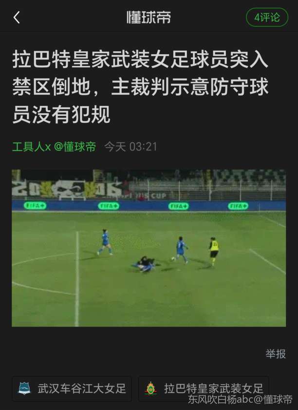 要不是那个争议判罚,武汉女足估计就在常规时间内,被摩洛哥女足俱乐部送走了