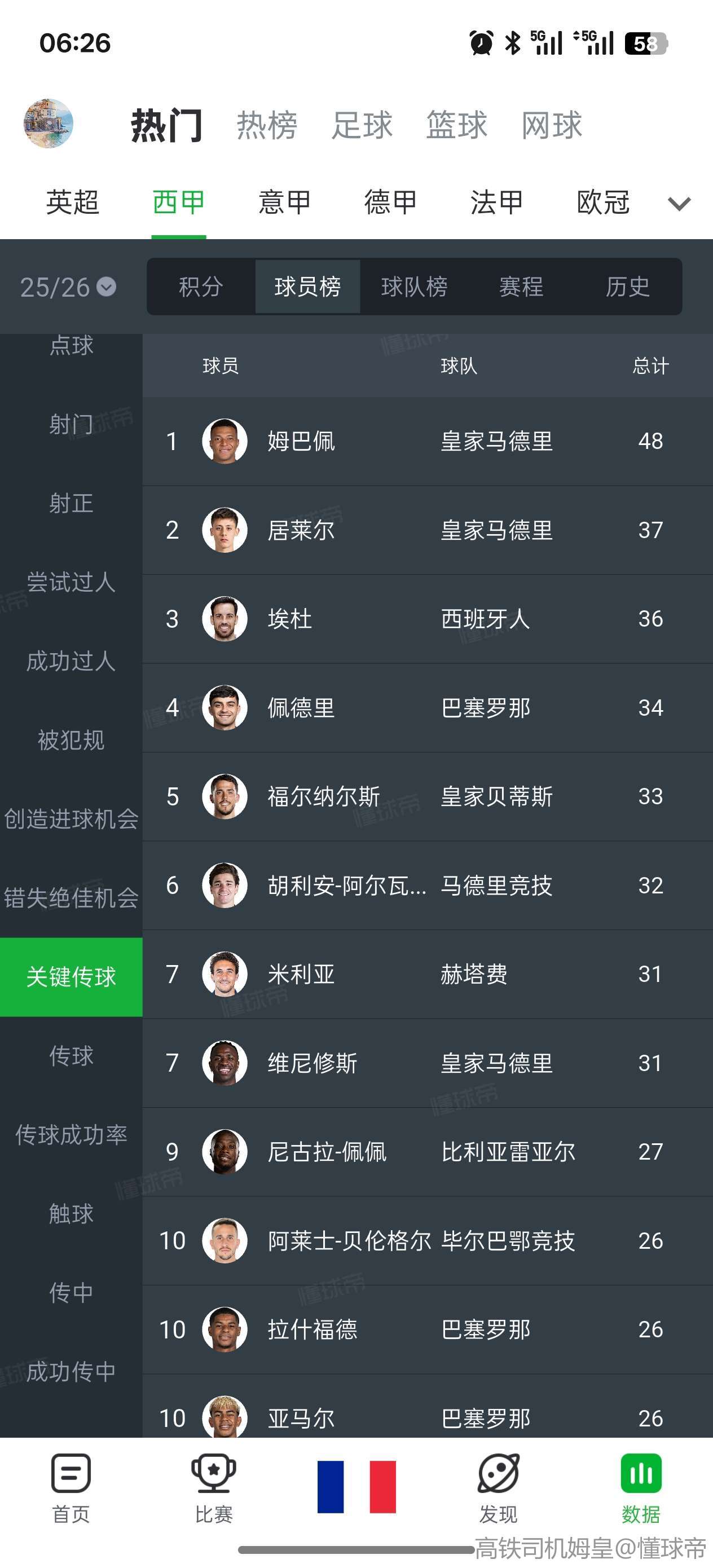 附2025赛季至今,欧冠和西甲传关键威胁球数据一览