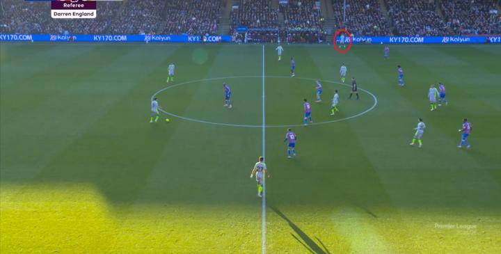 不过,人还在,精力不可能和上赛季类似,所以哪怕在主场,水晶宫依然保守应对,直至第10分钟,采用连续争高球的方式打进了禁区: