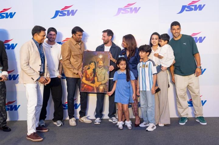 扫描下载懂球帝首页>动态> 新礼物,梅西在印度行期间收到自己与妻子印度风格画像