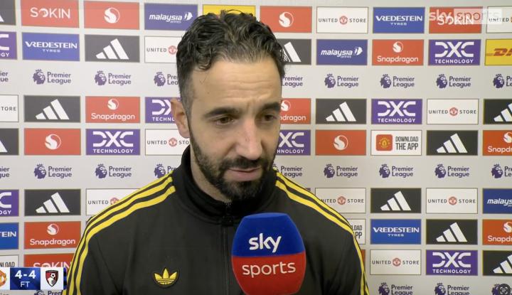 英超第16轮,曼联主场4-4战平伯恩茅斯,赛后,曼联主帅阿莫林接受了天空体育的采访,他表示球队没赢下比赛是因为细节没做好,而不是因为他们踢的是四后卫、三后卫还是五后卫。