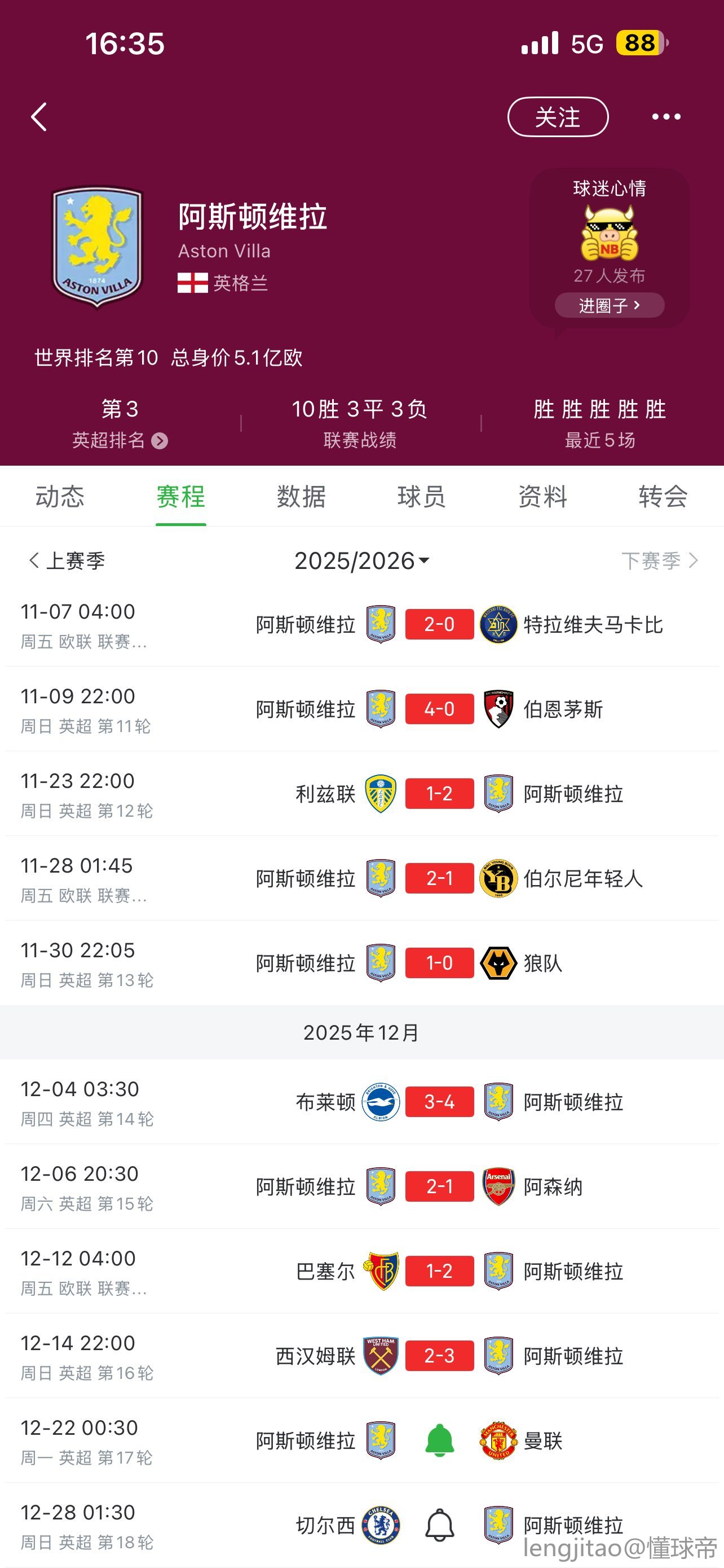 曼联球迷不用慌的 根据爱美丽上供定律 大概率平局 小概率维拉输