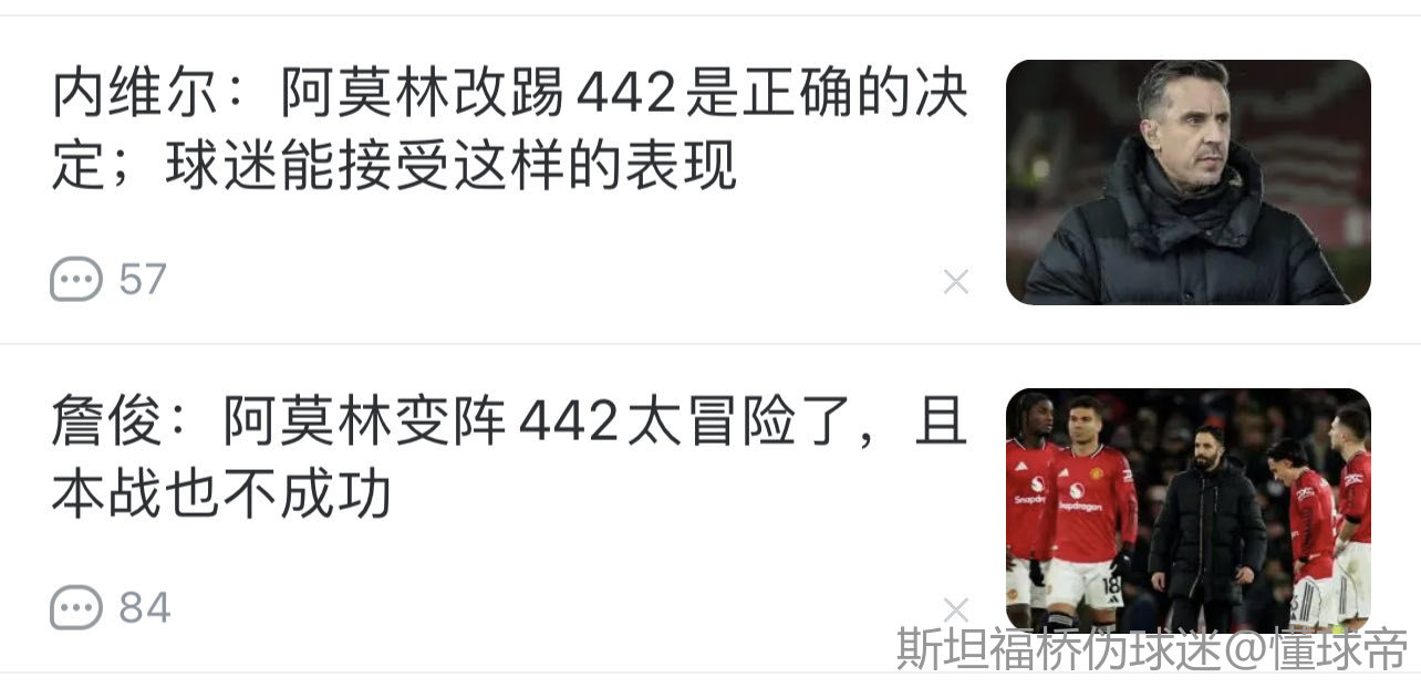 扫描下载懂球帝首页>动态> 内维尔:阿莫林改踢442是正确的决定;球迷能接受这样的表现