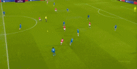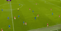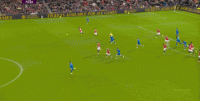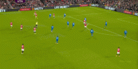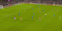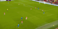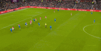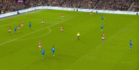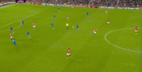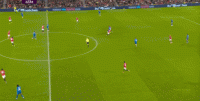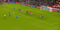 在第13分钟,曼联就在前场左路送出传中,进而取得了进球: