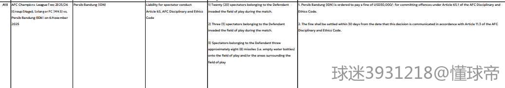 二级另一场比赛雪兰莪vs万隆,客队万隆有23个球迷冲场+往球场里扔了8个投掷物,被罚了3w刀