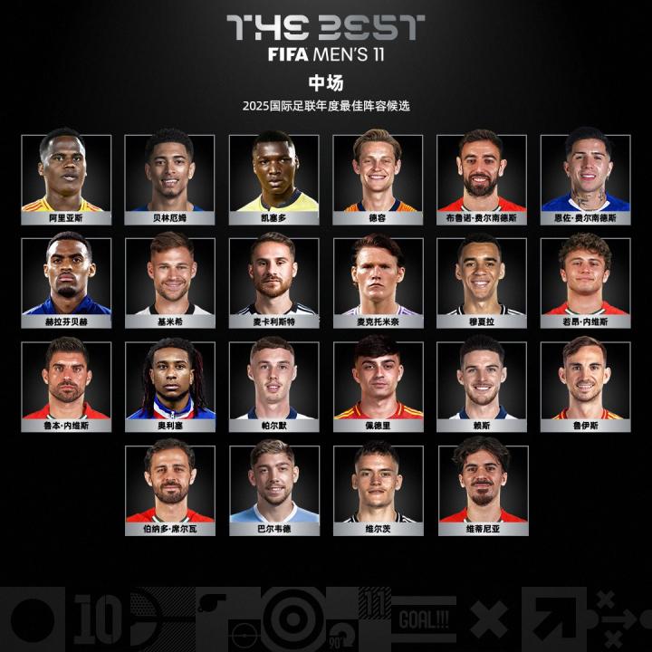 扫描下载懂球帝首页>动态> 2025FIFA年度最佳男足阵容:登贝莱、亚马尔领衔,姆巴佩无缘