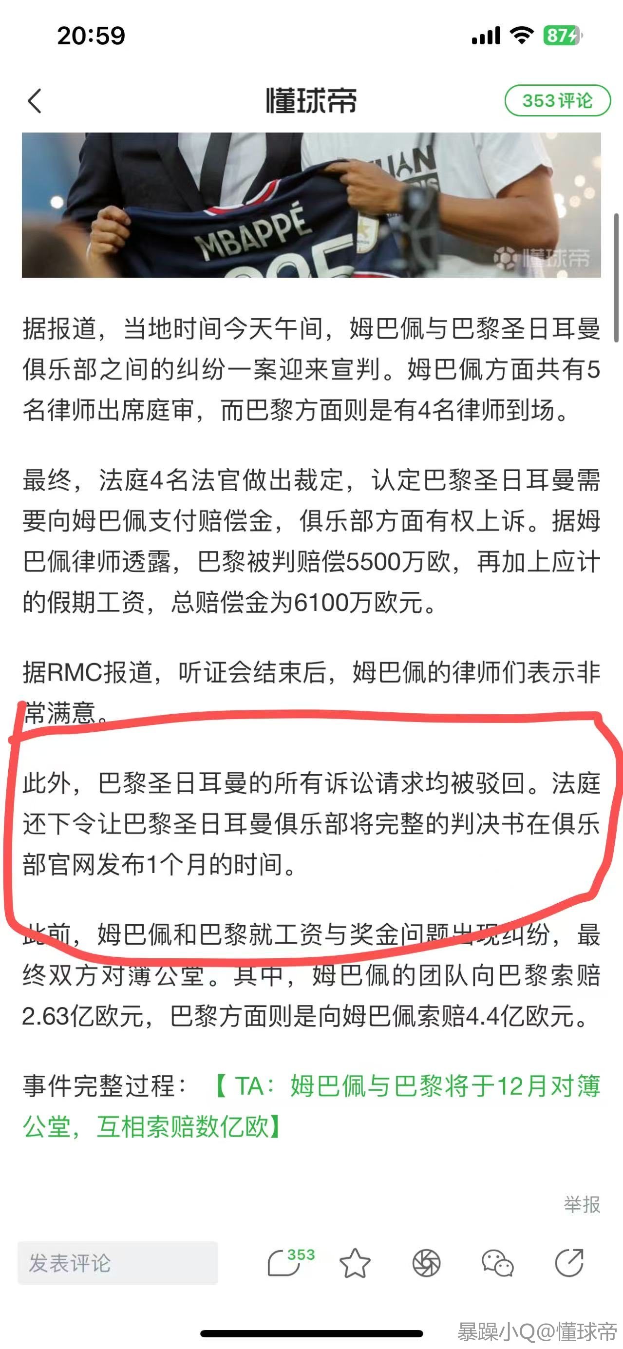 一直还老有俱乐部粉丝喷姆巴佩,这下法庭也成帮凶了是吧