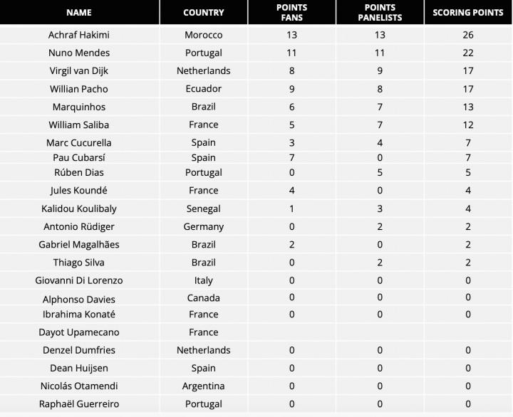扫描下载懂球帝首页>动态> FIFA最佳阵容后卫投票:阿什拉夫26分,门德斯22分,范戴克、帕乔各17分