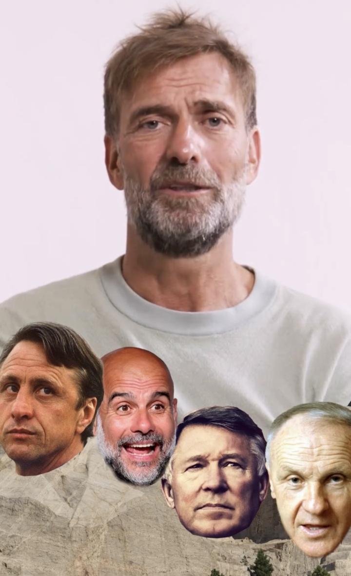 扫描下载懂球帝首页>动态> 克洛普选“教练总统山”:克鲁伊夫、瓜帅、弗格森和香克利