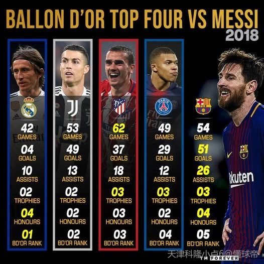 扫描下载懂球帝首页>动态> 历年FIFA年度最佳前三名:梅西7次入围,C罗5次姆巴佩3次