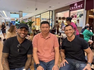 媒体人朱苍铄表示:“昨天在网上看到一张图片,是江苏队的功勋外援特谢拉跟现任南京城市队主教练张晓峰以及助理教练罗德尼的一张合影。当时就有很多球迷在讨论,有人说南京城市要买特谢拉了,有人说这是老照片。当然,更多人是说不可能、不相信。因为也知道,就南京城市这几年(转会)运作的手笔……但更离谱的是,有人说照片是P的,是AI的。然后我就去打听了一下,就获得了这张图(段落下方的图片)。看到这张图,就意味着他们至少见了面,还拍了两张合影。”