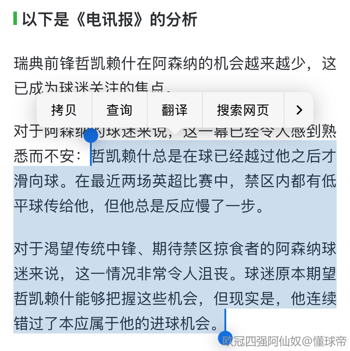瑞典前锋哲凯赖什在阿森纳的机会越来越少,这已成为球迷关注的焦点。