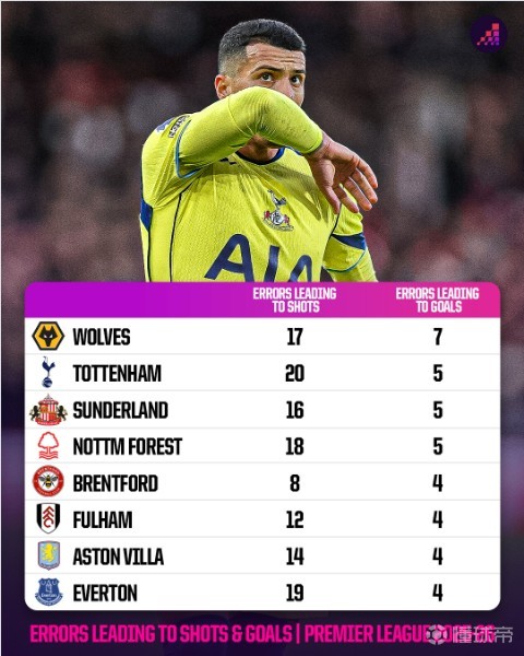 扫描下载懂球帝首页>动态> 本赛季英超失误导致丢球榜:狼队7球居首,热刺等球队5球第二