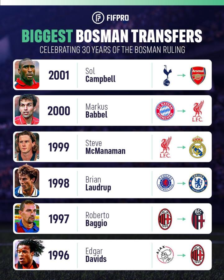 扫描下载懂球帝首页>动态> 懂球号> 回顾博斯曼法案施行30年,一些著名的代表性转会