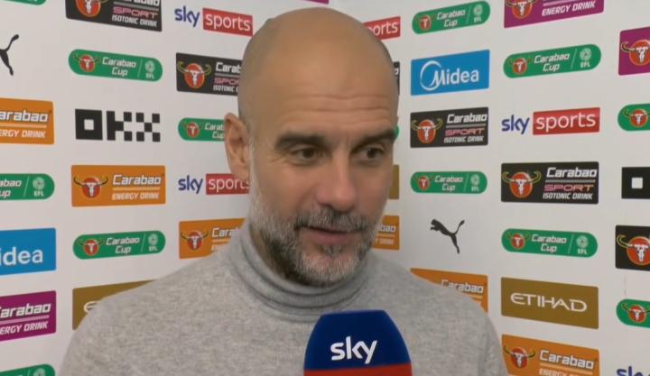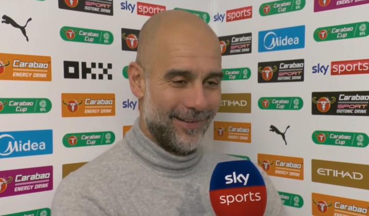 英联杯1/4决赛,曼城2-0击败布伦特福德,赛后,曼城主帅瓜迪奥拉接受了天空体育的采访。