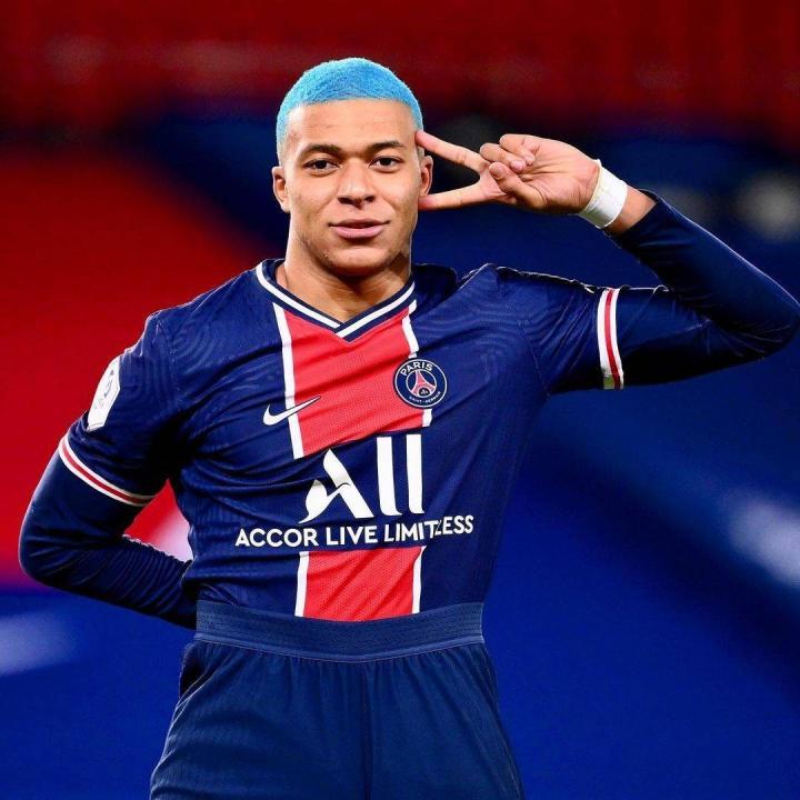 姆巴佩在巴黎时期留下了醒目的蓝色寸头