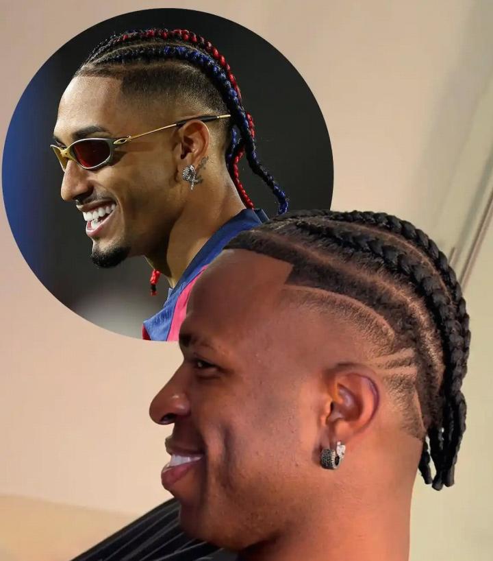巴西国家队队友拉菲尼亚与维尼修斯留出雷同的发型