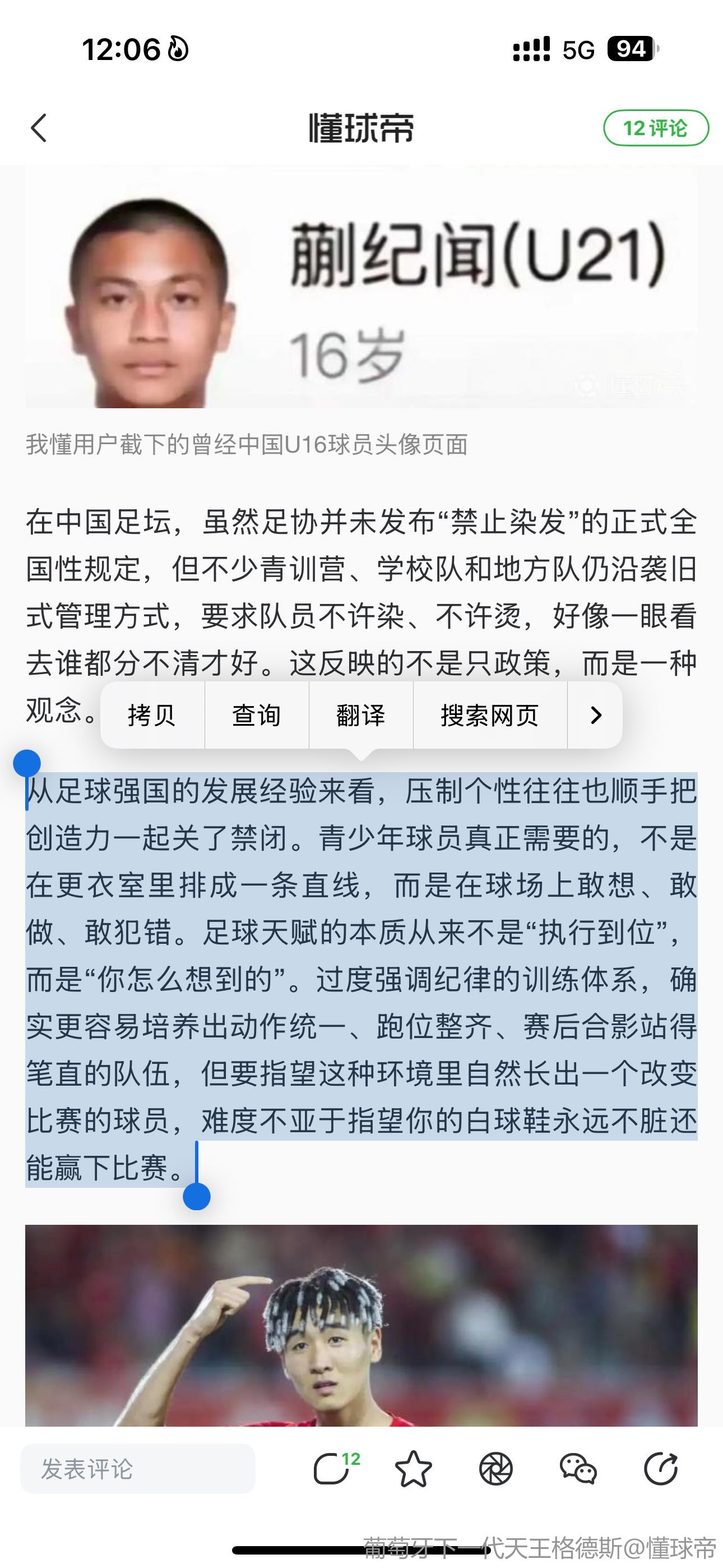 在很多足球国家,孩子第一次染发并不会引起任何讨论,顶多被队友调侃一句“兄逮,你这颜色挺勇啊”。但他们第一次敢在比赛中过人、第一次在边路硬着头皮内切、第一次尝试一脚教练看了都要倒吸一口凉气的直塞,反而会被认真记在小本本上。这些瞬间,决定的不是一场比赛的胜负,而是一个球员未来能走多远。相比“好不好管”,中国足球真正稀缺的,恰恰是那些不太好管、却能踢出点不一样东西的球员。