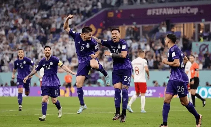 下半场,阿根廷凭借麦卡利斯特和阿尔瓦雷斯的进球,阿根廷2-0击败波兰,两胜一负积6分,以小组第一的身份出线。
