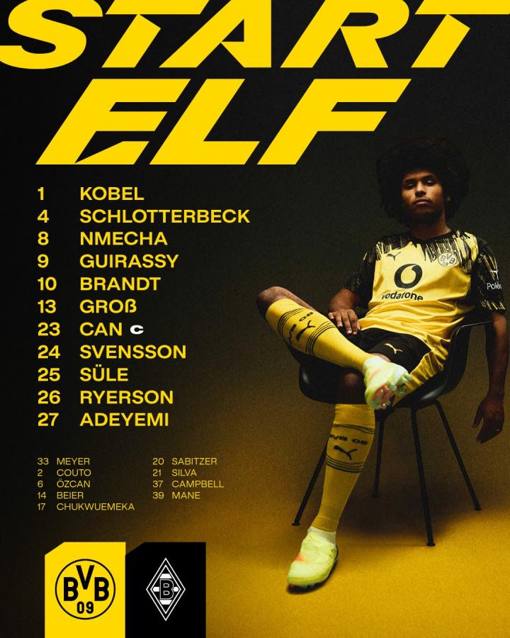 扫描下载懂球帝首页>动态> 多特vs门兴:吉拉西搭档阿德耶米,布兰特、格罗斯出战