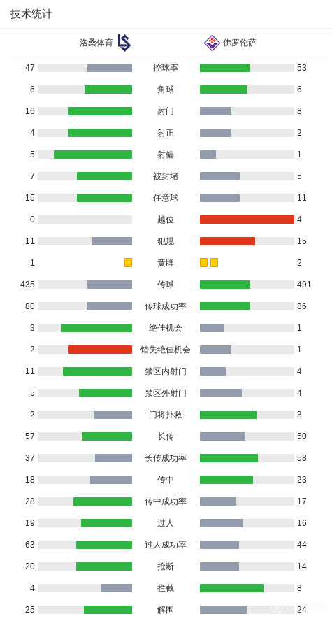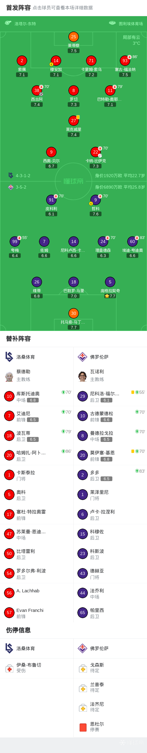 洛桑体育 vs 佛罗伦萨 比赛动态