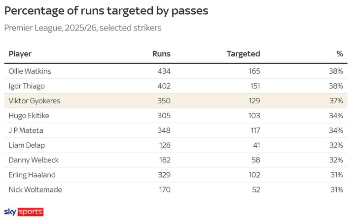 GeniusIQ的追踪数据显示,针对他跑动的传球尝试比例,甚至高于利物浦的埃基蒂克或曼城的哈兰德。