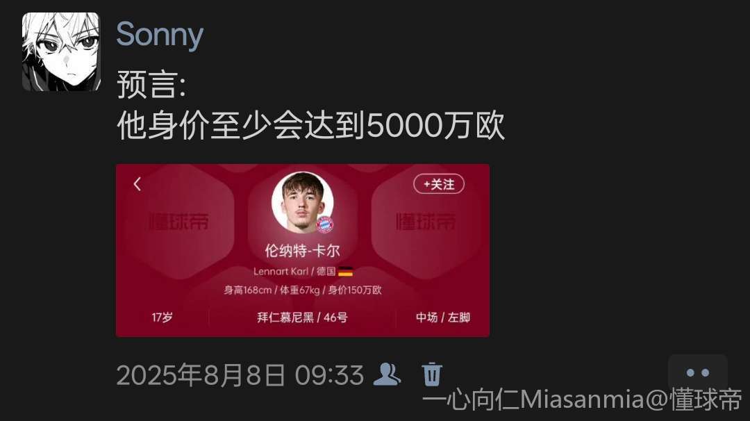 12-19 20:51卡尔身价暴涨至6000万欧,德转:他短短几周就在拜仁站稳脚跟