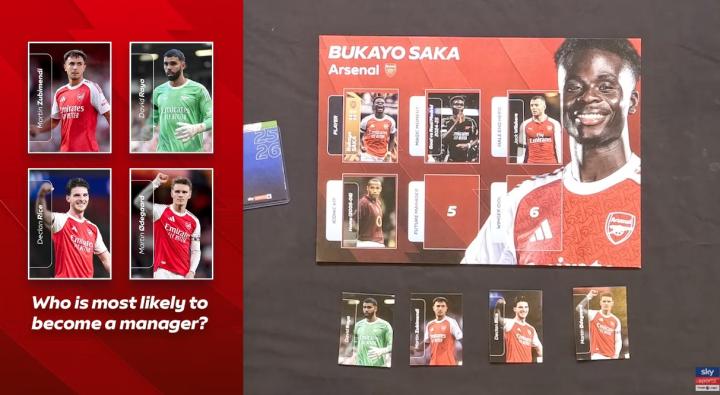 接下来是“未来主帅”。你觉得哪位阿森纳队友未来最适合当教练?选项有戴维-拉亚、苏比门迪、赖斯、厄德高。
