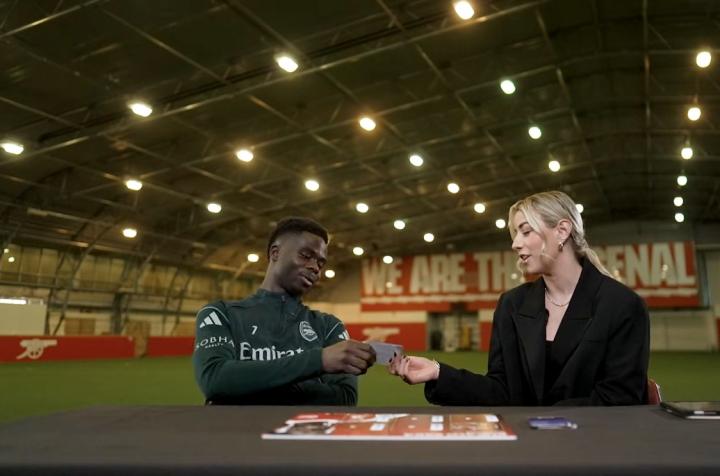 近日,阿森纳前锋萨卡参加了天空体育的贴纸挑战,共5项挑战,分别是最精彩的瞬间、青训英雄、最喜欢的阿森纳球衣、队友谁最适合当教练以及边锋位置的偶像。