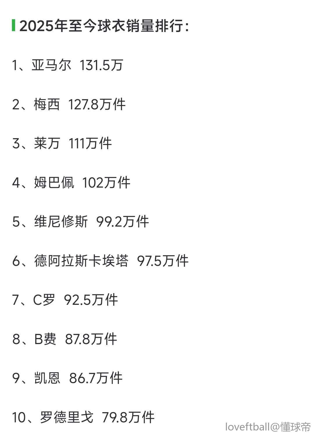 老梅脱离五大联赛这么久 球衣销量依然碾压当今欧洲各大球员 球衣销量和上座率爆棚才是真实的影响力。
