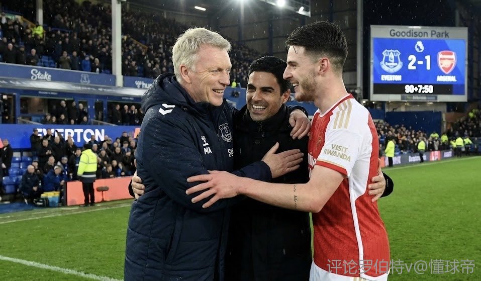 莫耶斯赛后热情拥抱了两名弟子阿尔特塔和赖斯