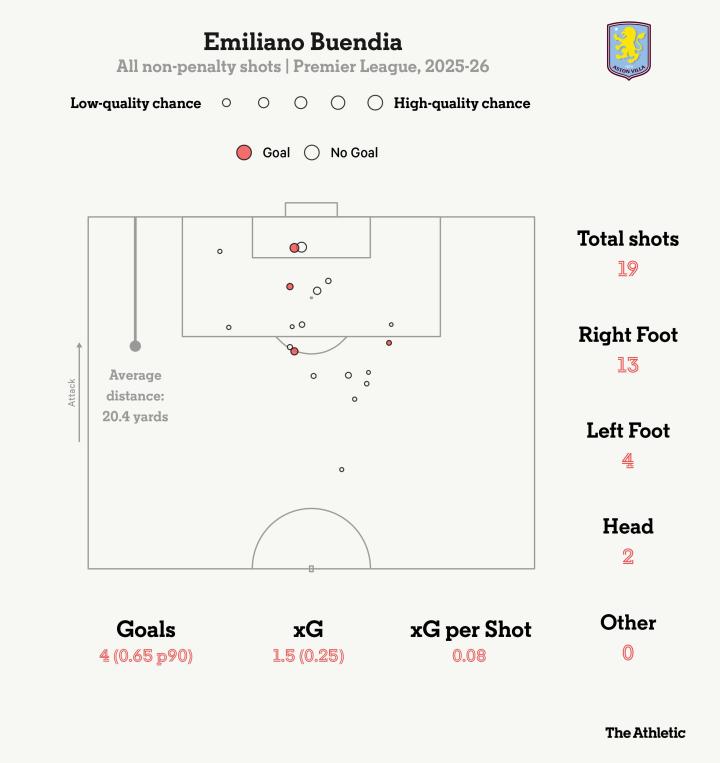 上周日对阵西汉姆联,维拉必须两次扳平比分,直到摩根-罗杰斯在第79分钟将比分改写为3-2。布恩迪亚在最后15分钟上场,帮助球队守住了胜果。他积极接应,保持球权运转,其15次触球没有一次发生在对方禁区内。