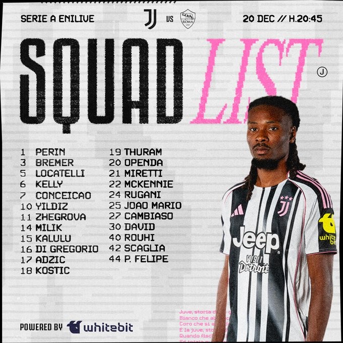 扫描下载懂球帝首页>动态> 尤文公布战罗马大名单:伊尔迪兹领衔,米利克长期伤缺后回归