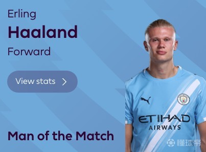 扫描下载懂球帝首页>动态> 梅开二度,哈兰德当选曼城vs西汉姆联全场最佳球员