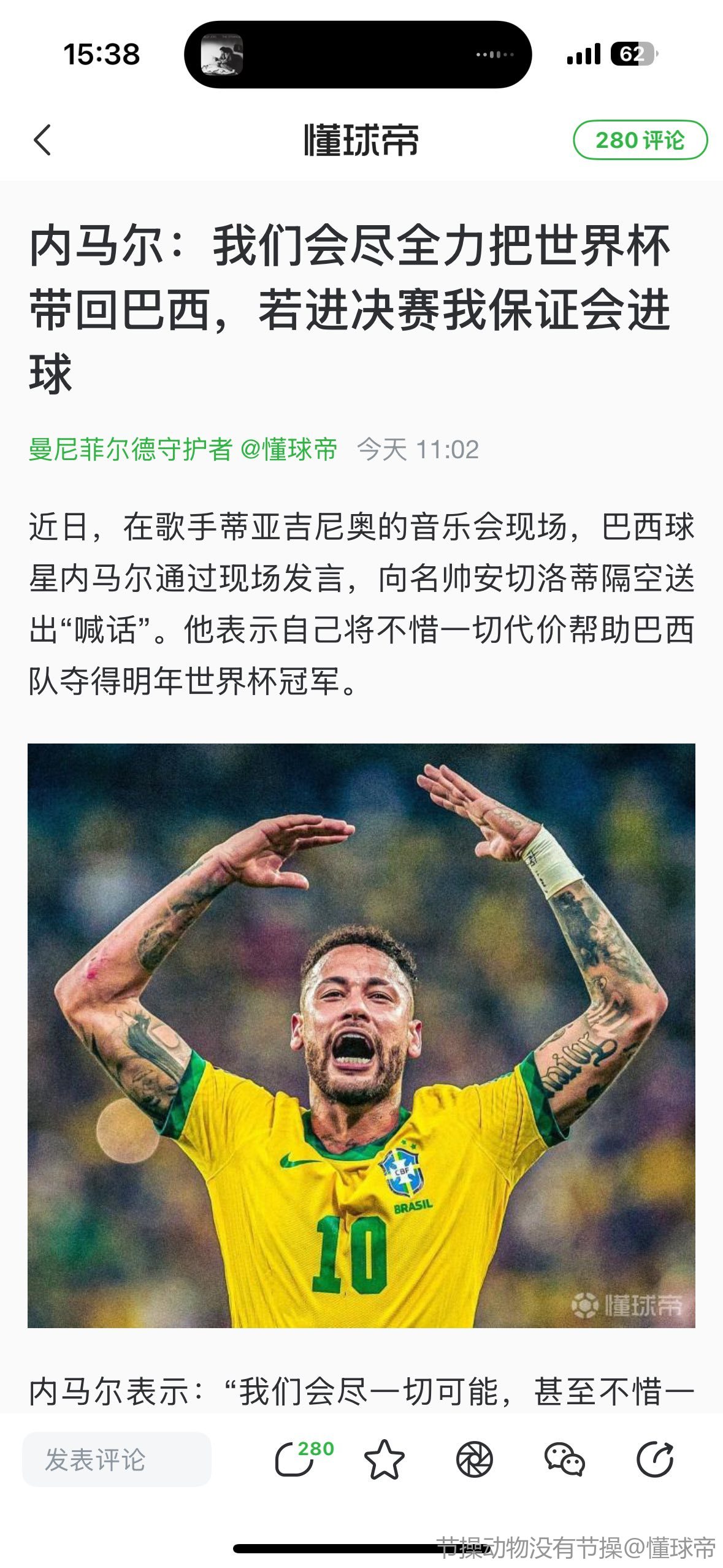 前脚说努力训练把世界杯带回巴西 转头继续潇洒放纵 我算是看清你了